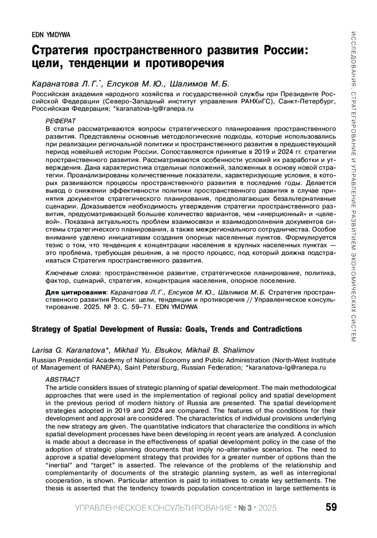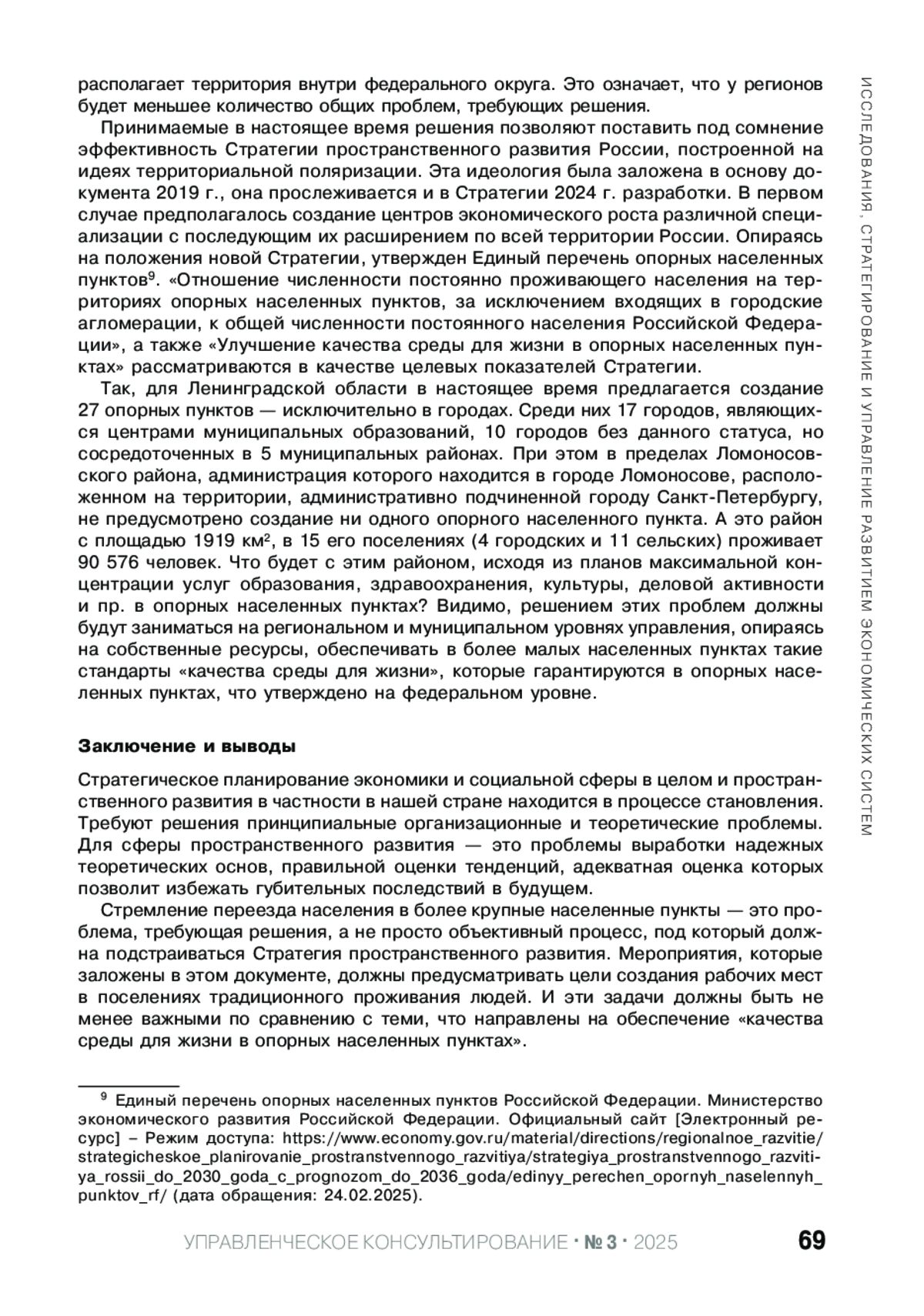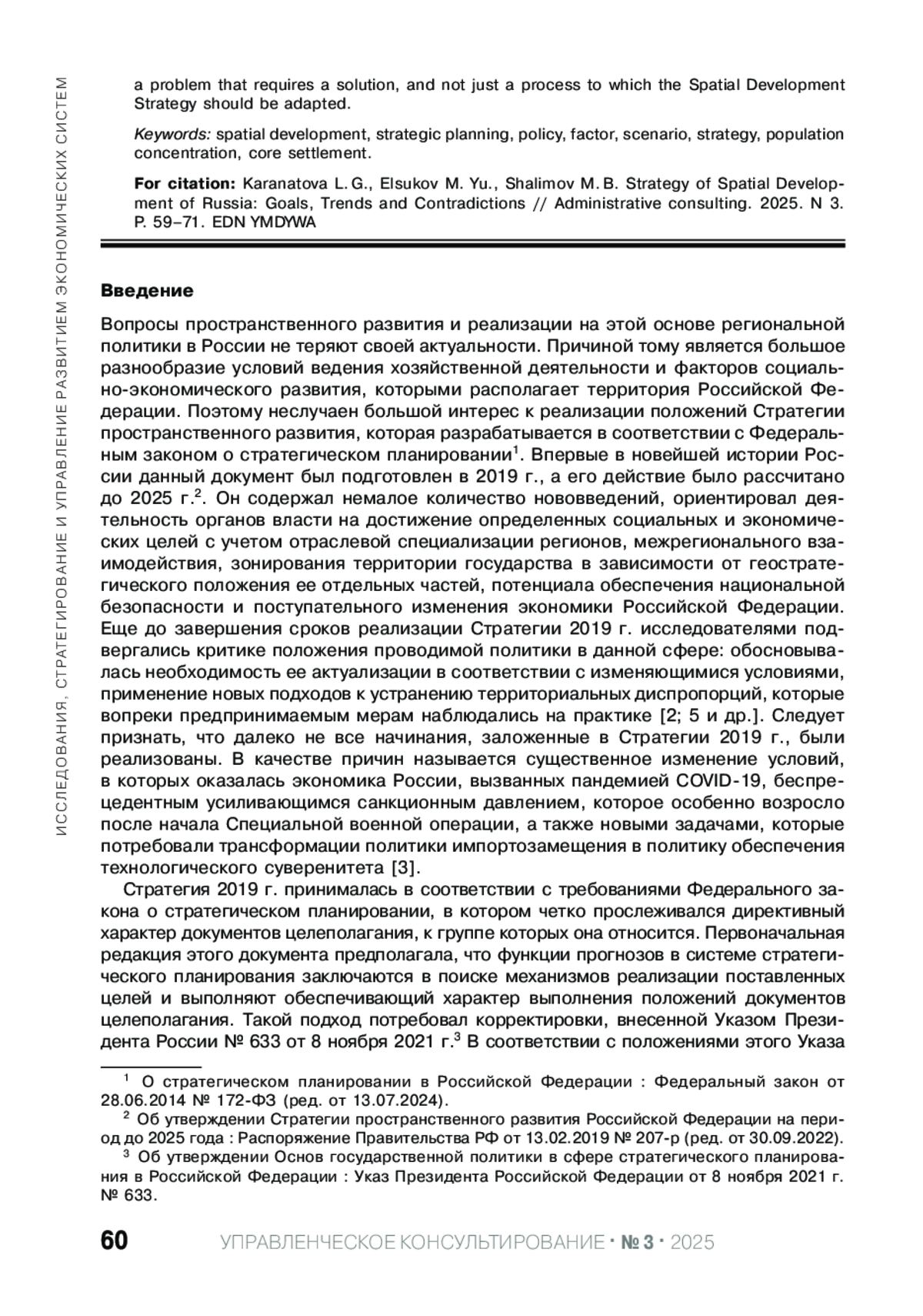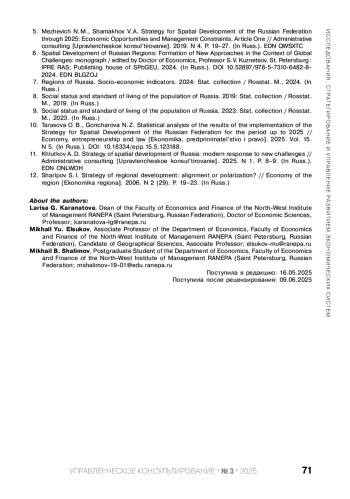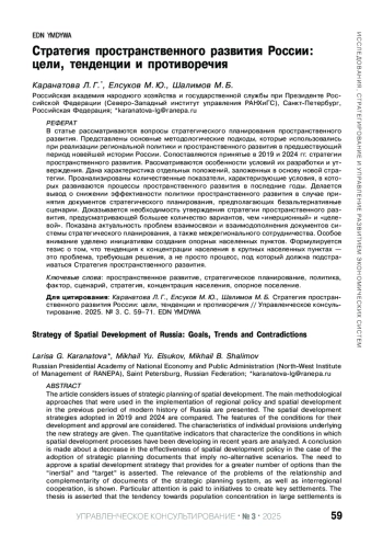 11. Хлутков А. Д. Стратегия пространственного развития России: современная реакция на новые вызовы // Управленческое консультирование. 2025. № 1. С. 8-9. EDN: ONLWOH