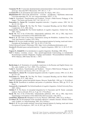 18. Fauconnier G., Turner M. The Way We Think. Conceptual Blending and the Mind’s Hidden Complexities. N. Y., 2002. 464 p.