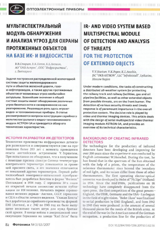 Статья: Мультиспектральный модуль обнаружения и анализа угроз для охраны протяженных объектов на базе ик- и видеосистем (2017)
