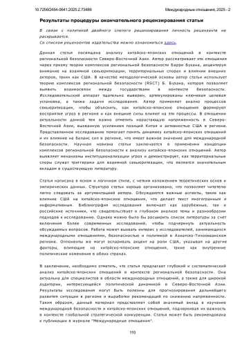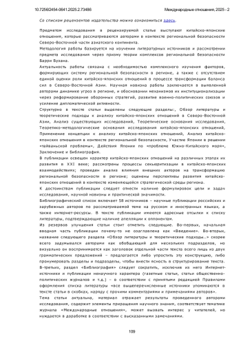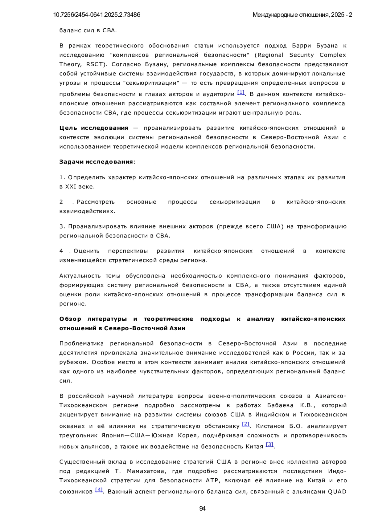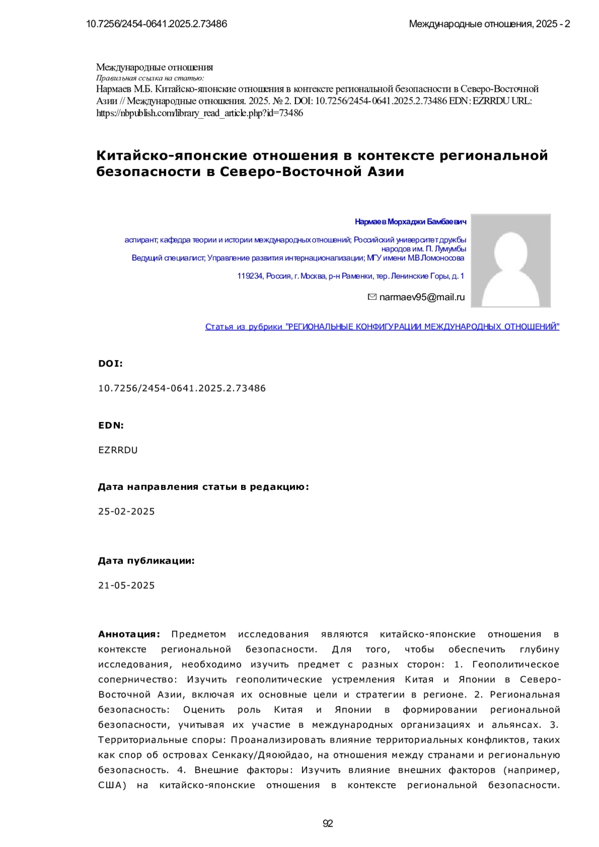 НАРМАЕВ М. Б. КИТАЙСКО-ЯПОНСКИЕ ОТНОШЕНИЯ В КОНТЕКСТЕ РЕГИОНАЛЬНОЙ БЕЗОПАСНОСТИ В СЕВЕРО-ВОСТОЧНОЙ АЗИИ // МЕЖДУНАРОДНЫЕ ОТНОШЕНИЯ. 2025. № 2