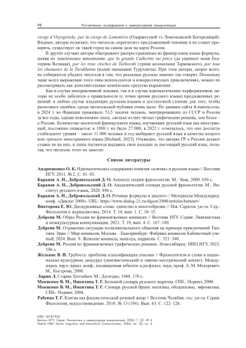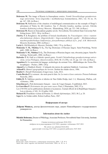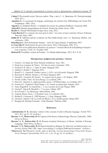 6. Дебренн М. Образ России во франкоязычных комиксах // Вестник НГУ. Серия: Лингвистика и межкультурная коммуникация. 2021. Т. 19, вып. 4. С. 167-180.