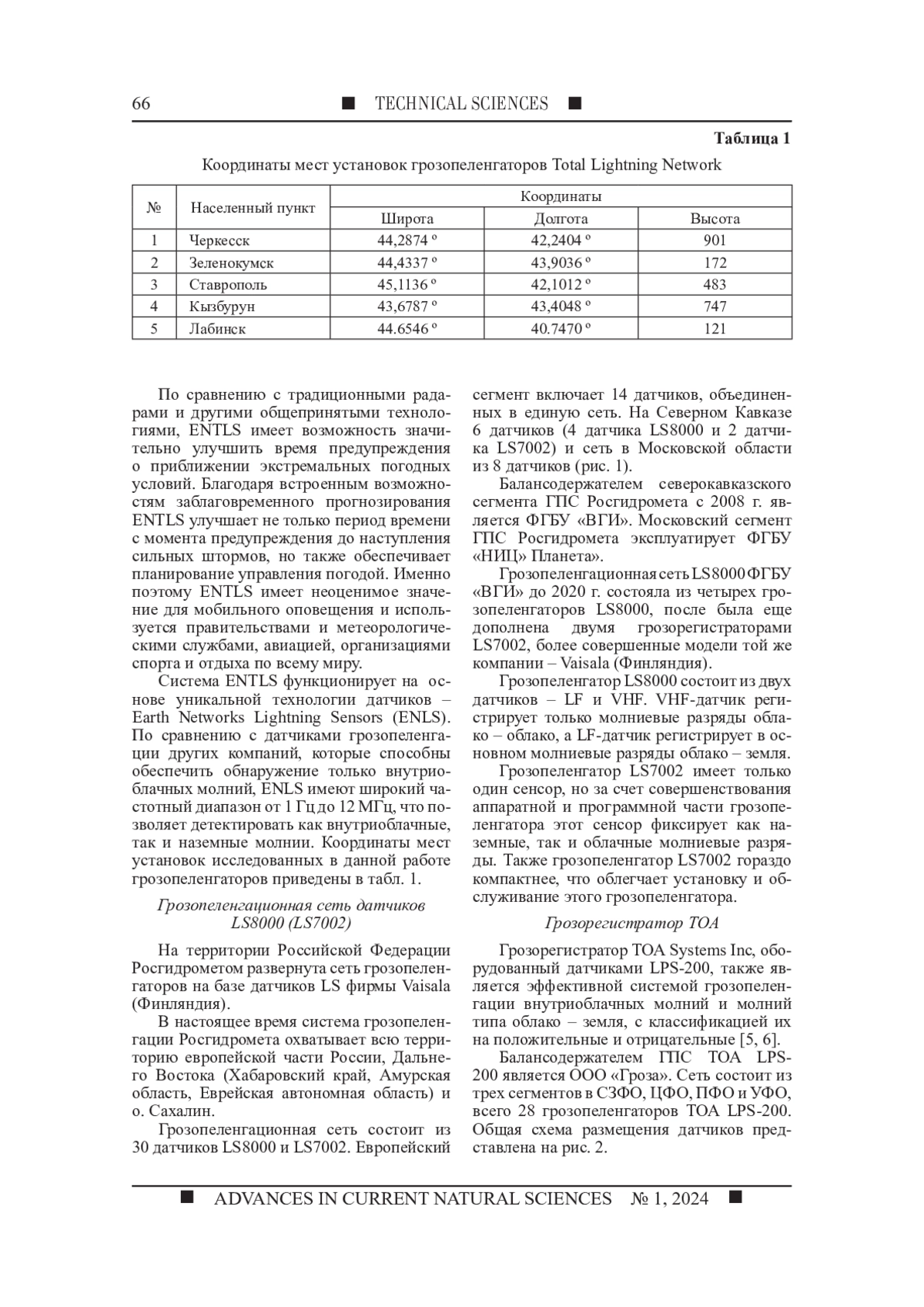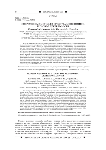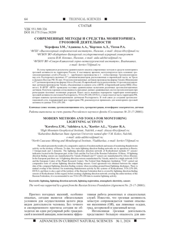 1. Аджиев А.Х., Стасенко В.Н., Тапасханов В.О. Система грозопеленгации на Северном Кавказе // Метеорология и гидрология. 2013. № 1. С. 5-11. EDN: PUJIBL