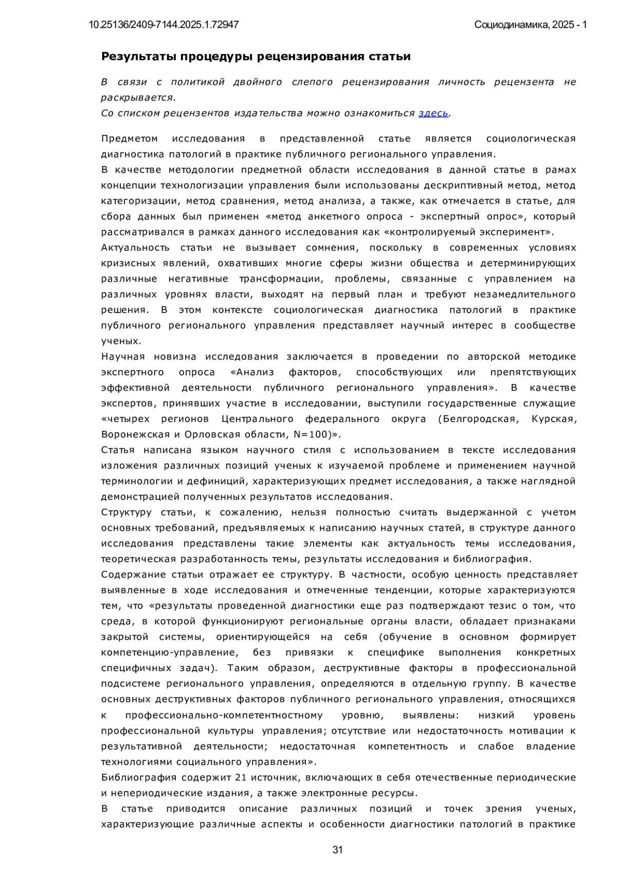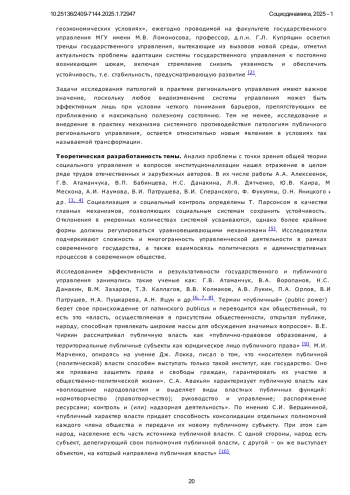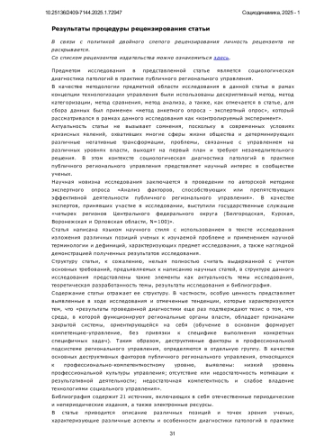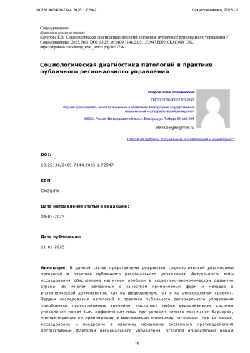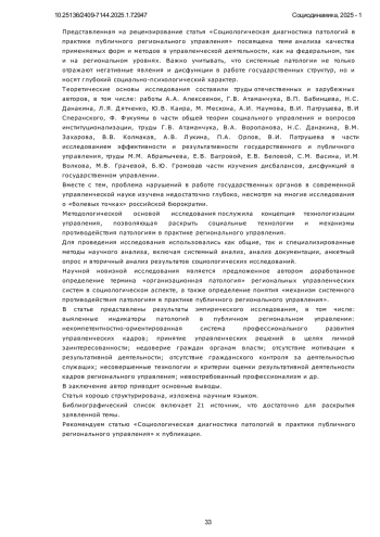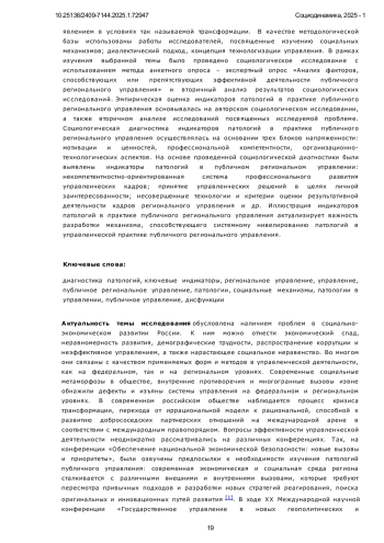 Статья: Социологическая диагностика патологий в практике публичного регионального управления (2025)