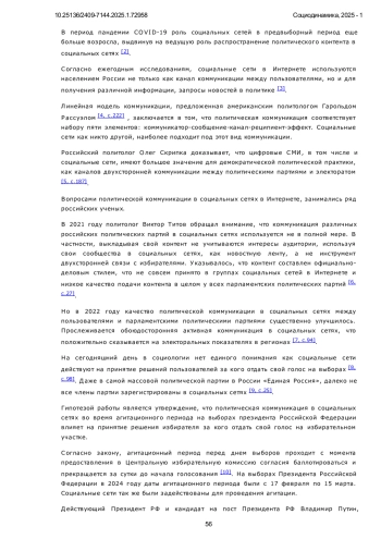 6. Титов, В. В. Медиаактивность российских парламентских партий в социальных сетях Рунета // Общество: политика, экономика, право. - 2021. - № 3(92). С. 25-29.