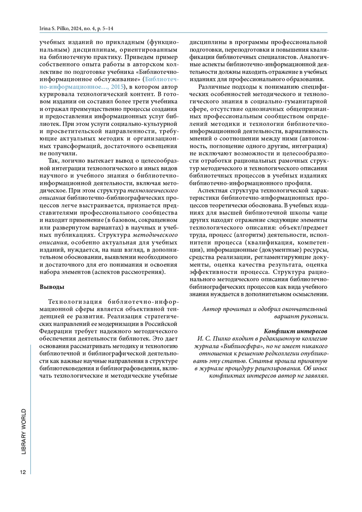 4. Библиотековедение. Общий курс : учебник / науч. ред. М. Н. Колесникова. 2-е изд., перараб. Санкт-Петербург : Профессия, 2024. 227 с.
