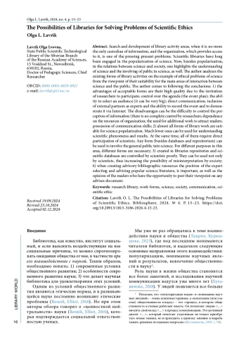 8. Лаврик О. Л., Юкляевская А. В. Рекомендательные книжные сервисы в библиографической деятельности библиотек // Сфера культуры. 2023. № 3. С. 139- 152.