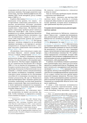 13. Юдина И. Г., Федотова О. А. Репозитории научных публикаций открытого доступа: история и перспективы развития // Информационное общество. 2020. № 6. С. 67-79.