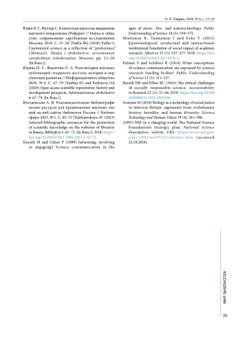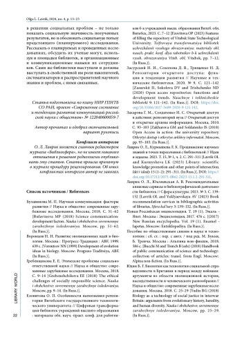 1. Булавинова М. П. Научная коммуникация: факторы развития // Наука и общество: современные зарубежные исследования. Москва, 2018. С. 51-62