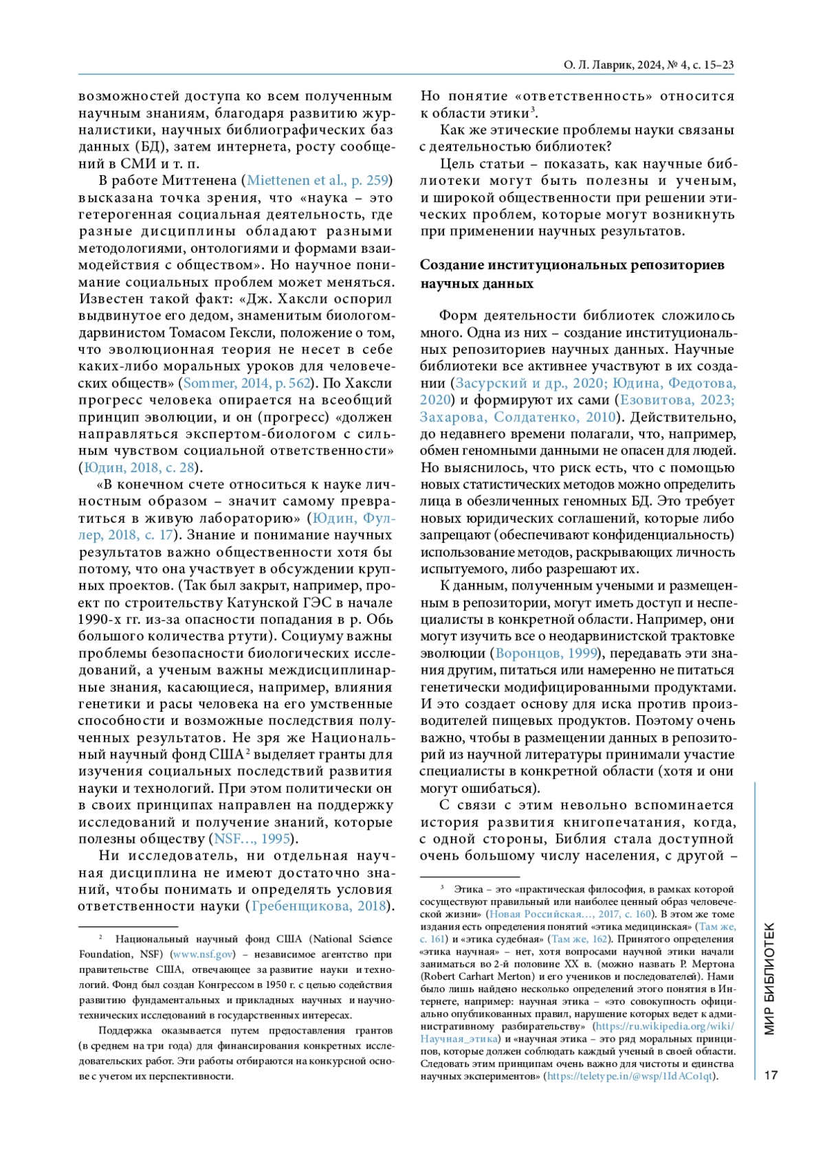 3. Гребенщикова Е. Е. Этические проблемы социально ответственной науки // Наука и общество: современные зарубежные исследования. Москва, 2018. С. 9-14