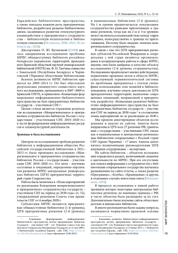 16. Нерюева М. В. Сотрудничество библиотек приграничных территорий Содружества Независимых Государств // Вестник Библиотечной Ассамблеи Евразии. 2022. № 1. С. 24-28.