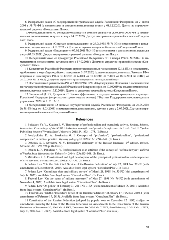 5. Митрахов А. С. Конституционно-правовое развитие принципа профессионализма и компетентности гражданских служащих // Бизнес в законе. 2008. № 1. С. 51-53. EDN: JWSHZN