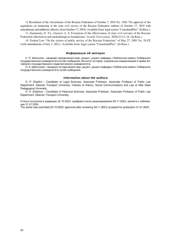 13. Знаменский Д. Ю., Гусаров А. С. Оценка эффективности государственных гражданских служащих Российской Федерации (теоретико-методологические основы) // Вестник Государственного университета управления. 2020. № 2. С. 12-16. EDN: KBQTSD