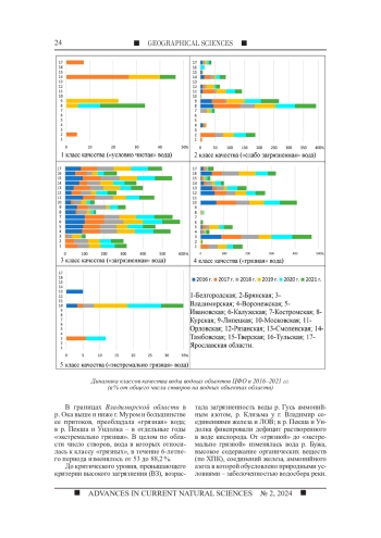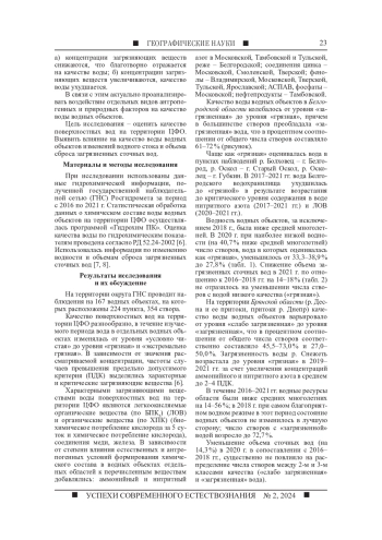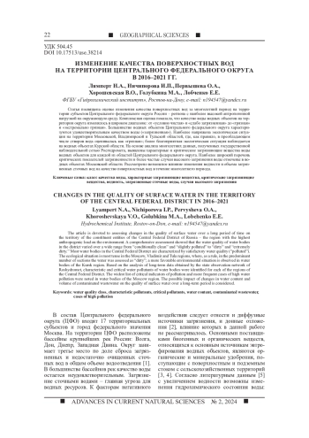 Статья: ИЗМЕНЕНИЕ КАЧЕСТВА ПОВЕРХНОСТНЫХ ВОД НА ТЕРРИТОРИИ ЦЕНТРАЛЬНОГО ФЕДЕРАЛЬНОГО ОКРУГА В 2016-2021 ГГ. (2024)