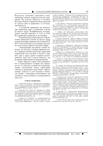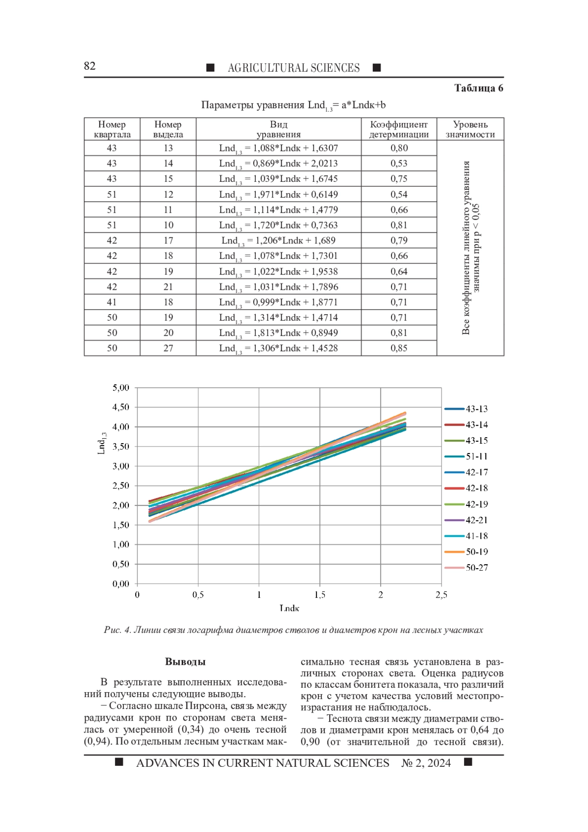 2. Богданов А.П., Алешко Р.А., Ильинцев А.С. Выявление взаимосвязи диаметра крон деревьев с различными таксационными показателями в северо-таежном лесном районе // Вопросы лесной науки. 2019. Т. 2, № 4. С. 1-10. DOI: 10.31509/2658-607x-2019-2-4-1-10 EDN: YPGGEA
