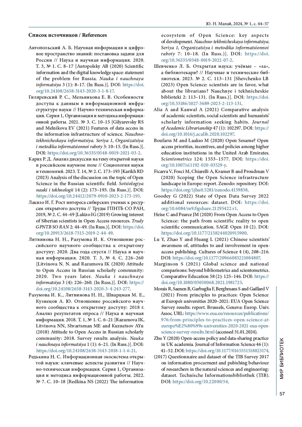 3. Карих Р. Д. Анализ дискуссии на тему открытой науки в российском научном поле // Социология науки и технологий. 2023. T. 14, № 2. С. 173-193