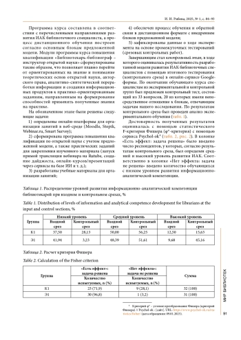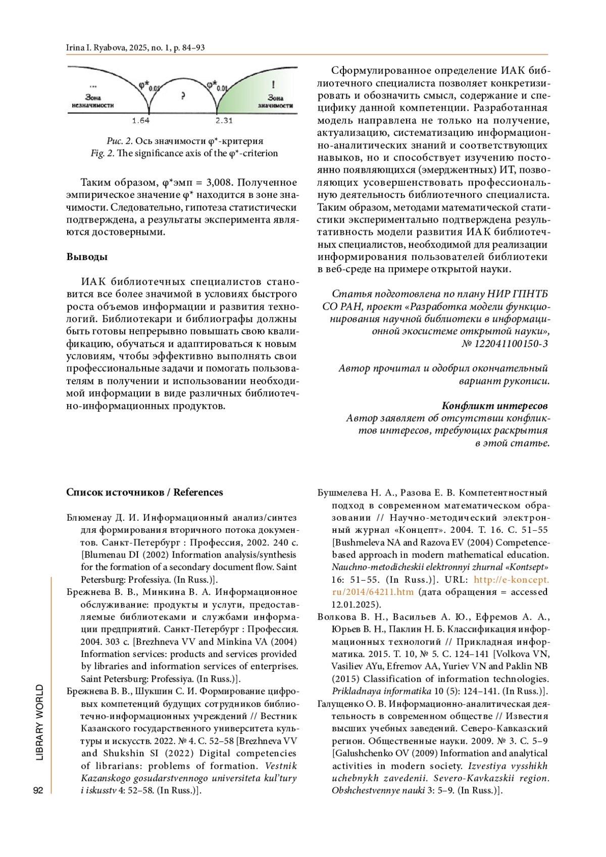 14. Пекшева М. А. Профессиональные компетенции сотрудников библиотек, осуществляющих информационно-аналитическое сопровождение научных исследований // Библиосфера. 2022. № 2. С. 38-47 https://doi.org/10.20913/1815-3186-2022-2-38-47