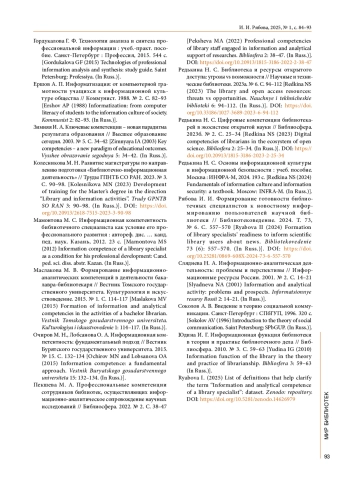 16. Редькина Н. С. Цифровые компетенции библиотекарей в экосистеме открытой науки // Библиосфера. 2023б. № 2. С. 25-34 https://doi.org/10.20913/1815-3186-2023-2-25-34