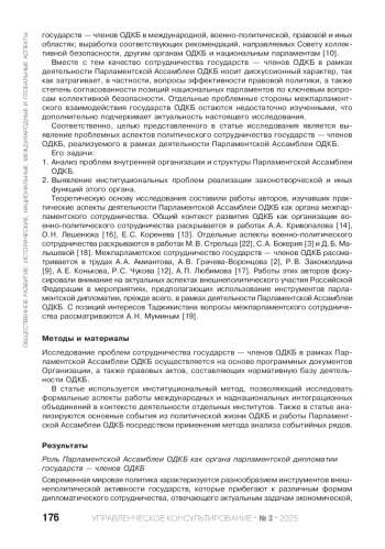 10. Игнатов В. С. Парламентская ассамблея ОДКБ: процесс становления и перспективы развития // Управленческое консультирование. Актуальные проблемы государственного и муниципального управления. 2009. № 4 (36). С. 46-51. EDN: KYCCFV