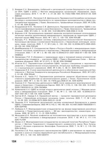5. Бондуровский В. В., Поспелов С. В. Деятельность Парламентской ассамблеи ОДКБ в контексте трансформации вызовов и угроз безопасности // Право. Безопасность. Чрезвычайные ситуации. 2024. № 2 (63). С. 14-26. DOI: 10.61260/2074-1626-2024-2-14-26 EDN: MAQBZM