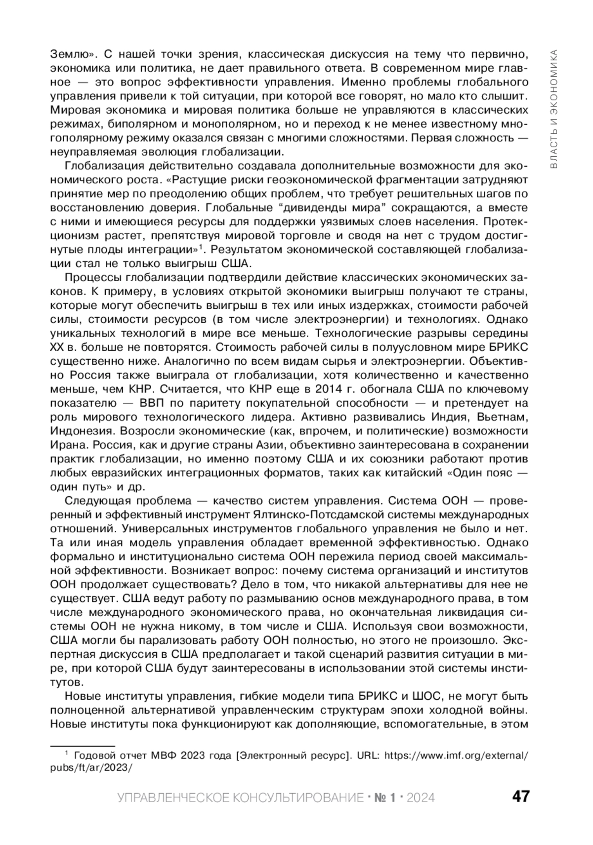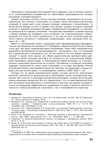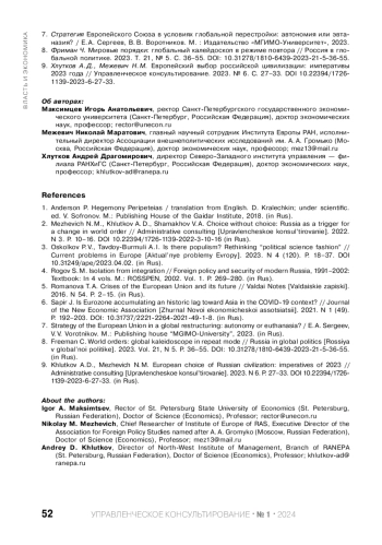 МАКСИМЦЕВ И. А., МЕЖЕВИЧ Н. М., ХЛУТКОВ А. Д. ПОТЕРЯ СВЯЗИ - ПОТЕРЯ УПРАВЛЕНИЯ К ВОПРОСУ ОБ ЭКОНОМИЧЕСКИХ И ПОЛИТИЧЕСКИХ ИТОГАХ 2023 ГОДА // УПРАВЛЕНЧЕСКОЕ КОНСУЛЬТИРОВАНИЕ. 2024. № 1 (181)