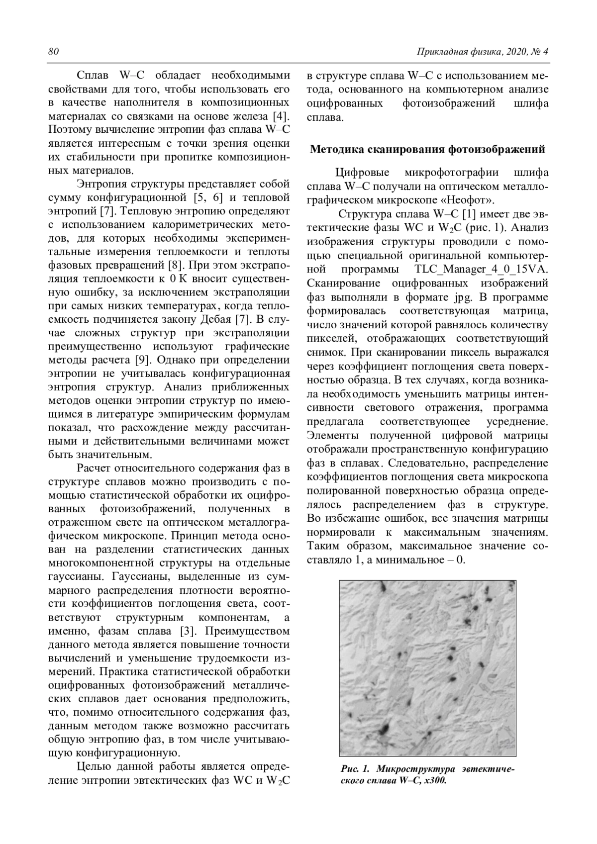 Сыроватко Ю. В. Расчет энтропии эвтектических фаз WC и W2C в сплаве W–C методом статистической обработки фотоизображений 79