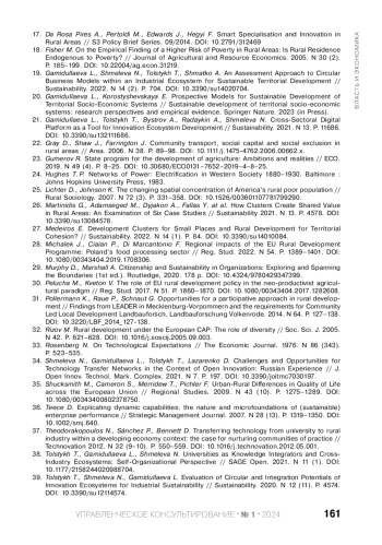 15. Chertow M., Portlock M. Developing Industrial Ecosystems: Approaches, Cases, and Tools // Yale School of Forestry & Environmental Studies Bulletin Series. 2002. N 95. 16. Cotter D. Poor people in poor places: Local opportunity structures and household poverty // Rural Sociology. 2002. N 67 (4). DOI: 10.1111/j.1549-0831.2002.tb00118.x