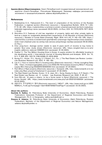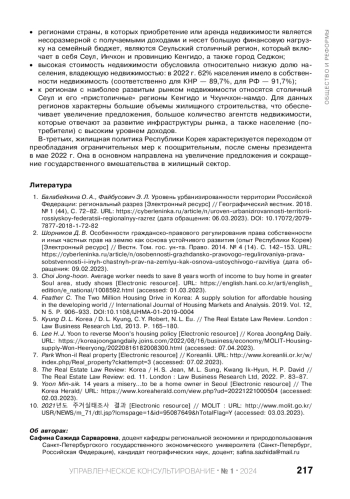 6. Lee H. J. Yoon to reverse Moon’s housing policy// Korea JoongAng Daily. URL: https://koreajoongangdaily.joins.com/2022/08/16/business/economy/MOLIT-Housing-supply-Won-Heeryong/20220816182008300.html (accessed: 07.04.2023).