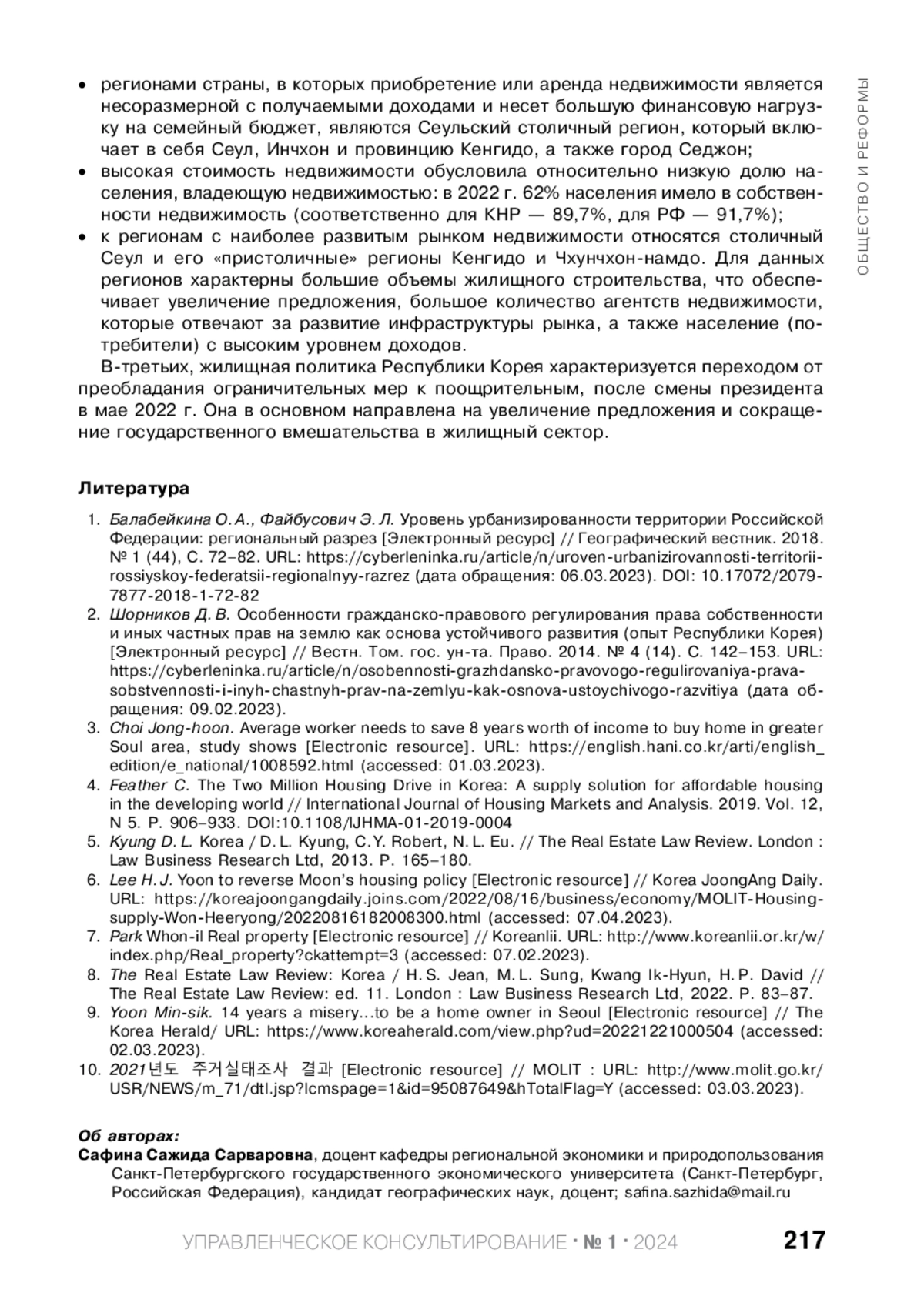 3. Choi Jong-hoon. Average worker needs to save 8 years worth of income to buy home in greater Soul area, study shows. URL: https://english.hani.co.kr/arti/english_edition/e_national/1008592.html (accessed: 01.03.2023).