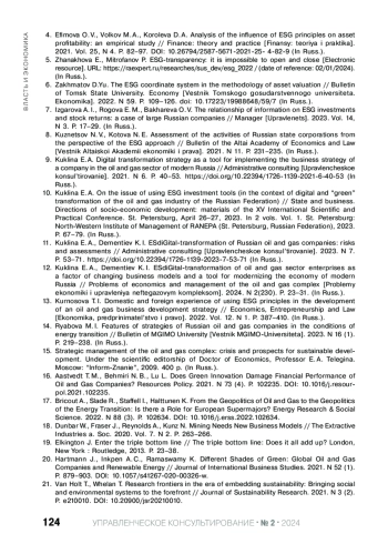 3. Деревянко Е. А. Влияние ESG-рейтинга нефтегазовых компаний на динамику их капитализации // Развитие Российской экономики и ее финансовая безопасность в условиях сов ре менных вызовов и угроз: материалы Международной научно-практической конференции. Ростов-наДону: Ростовский государственный экономический университет “РИНХ”, 2022. С. 41-44. EDN: KJFETP