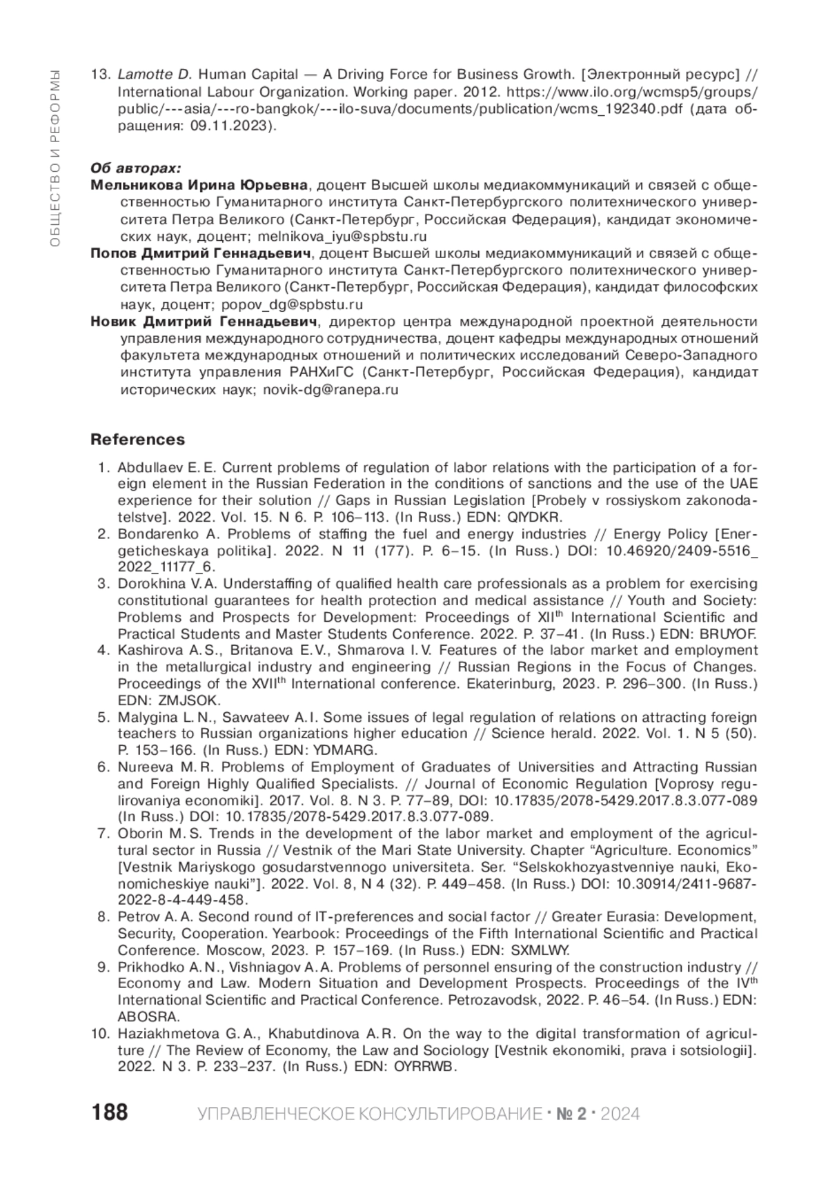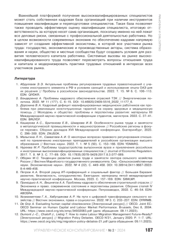 6. Нуреева М. Р. Проблемы трудоустройства выпускников вузов и привлечения российских и иностранных высококвалифицированных специалистов // Journal of Economic Regulation. 2017. Т. 8. № 3. С. 77-89. DOI: 10.17835/2078-5429.2017.8.3.077-089 EDN: ZMIHXJ
