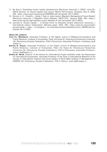 12. Dumont J.-C., Chaloff J., Liebig T. How to make Labour Migration Management Future-Ready?// Migration Policy Debates. OECD: №21, January 2020. P. 1-7. URL: https://www.oecd.org/els/mig/migration-policy-debates-21.pdf (дата обращения: 09.11.2023).