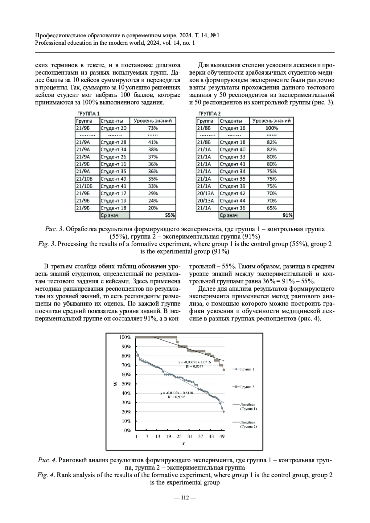Постановка задачи. Автор статьи ставит своей целью в ходе эксперимента с экспериментальной и контрольной группами арабских студентов определить уровень усвоения и обученности этих студентов-медиков профессиональной лексике.