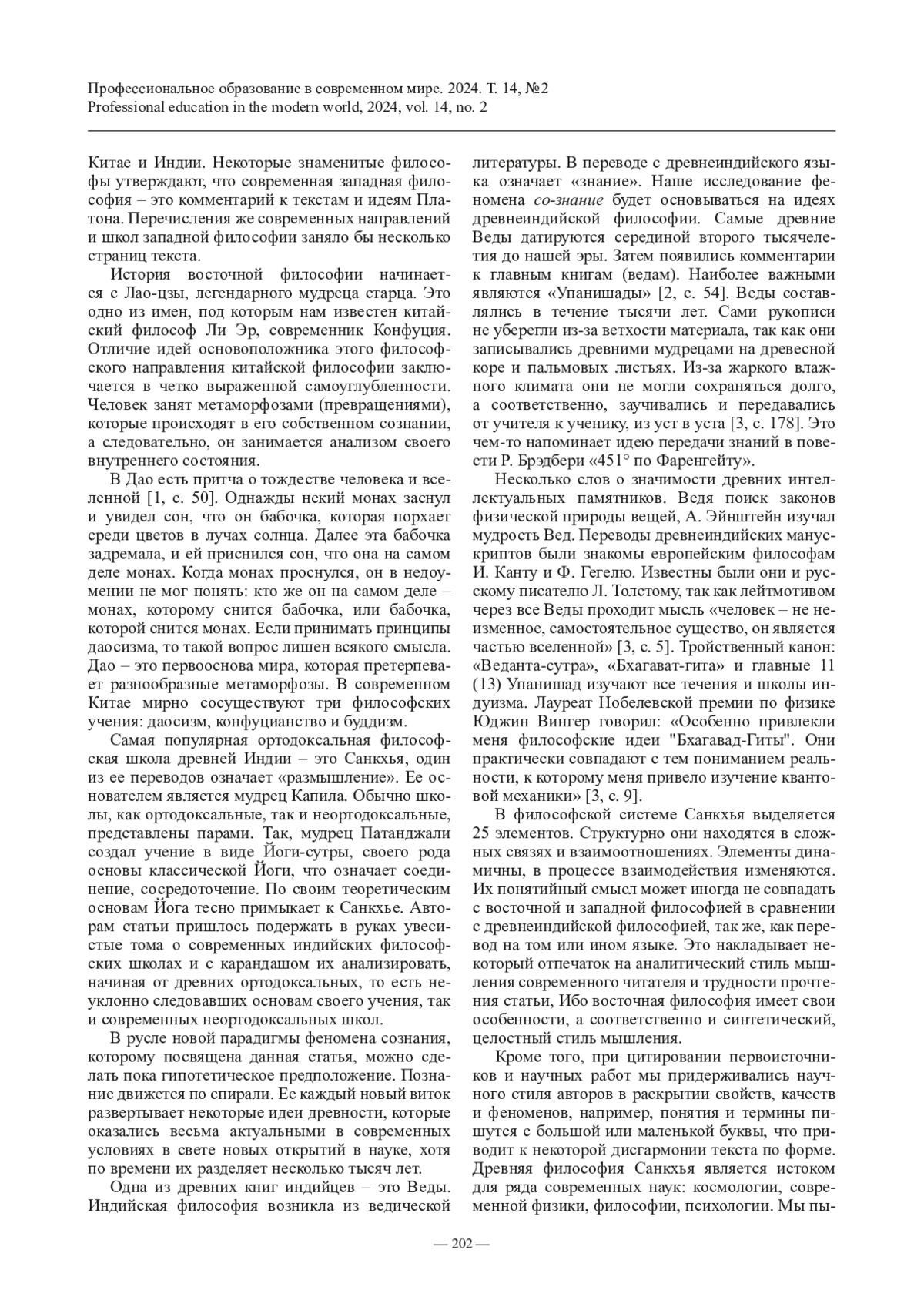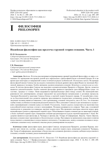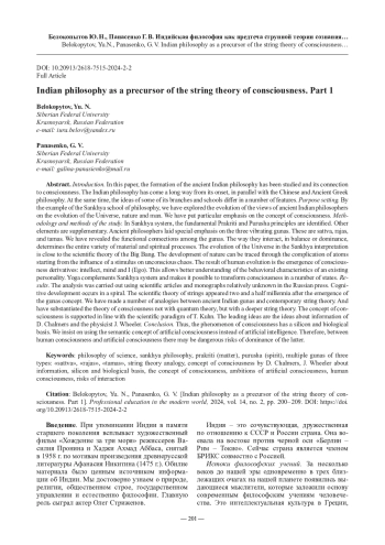 Введение. В статье рассматривается формирование древней индийской философии, ее связь с сознанием. От зарождения она прошла долгий путь параллельно с философией Китая и античной Греции. В то же время идеи некоторых ее направлений и школ отличаются рядом особенностей.