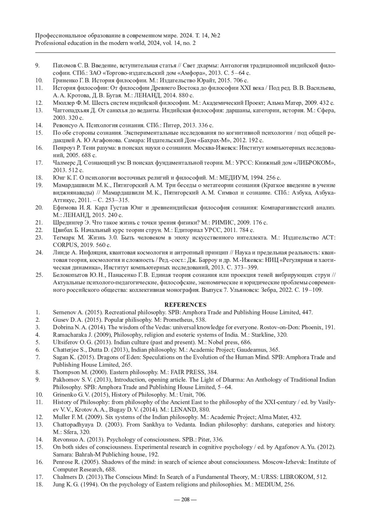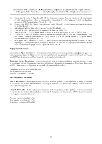 25. Белокопытов Ю. Н., Панасенко Г. В. Единая теория сознания или проекция теней вибрирующих струн // Актуальные психолого-педагогические, философские, экономические и юридические проблемы современного российского общества: коллективная монография. Выпуск 7. Ульяновск: Зебра, 2022. С. 19 - 109.