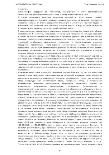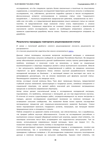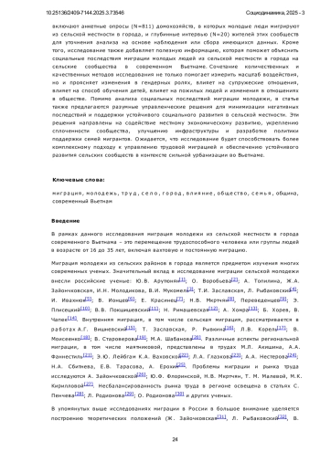 Статья: Социальное влияние миграции молодежи из сельской местности в города на сельские сообщества в современном Вьетнаме (2025)