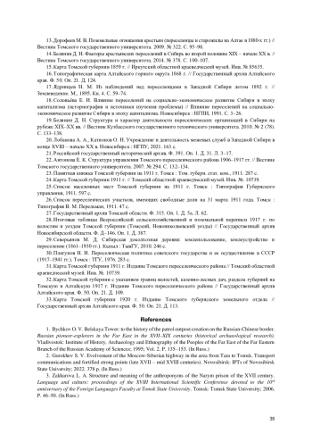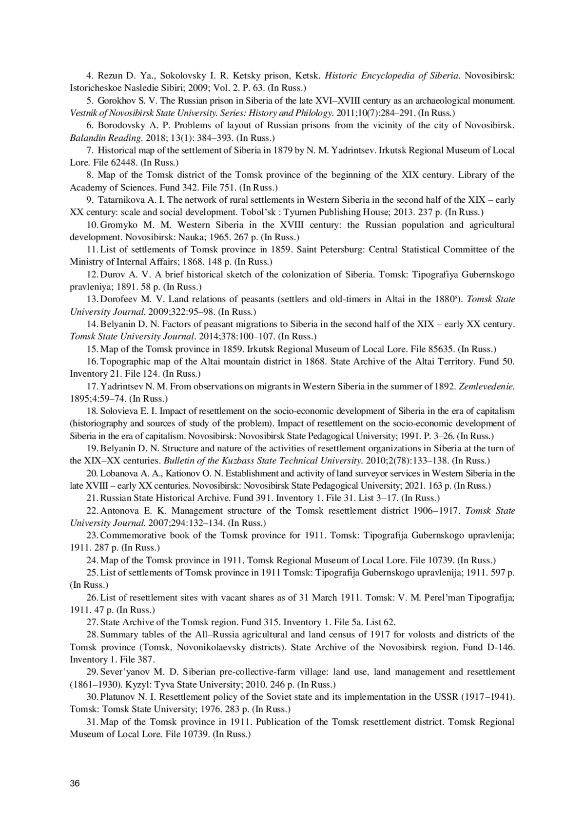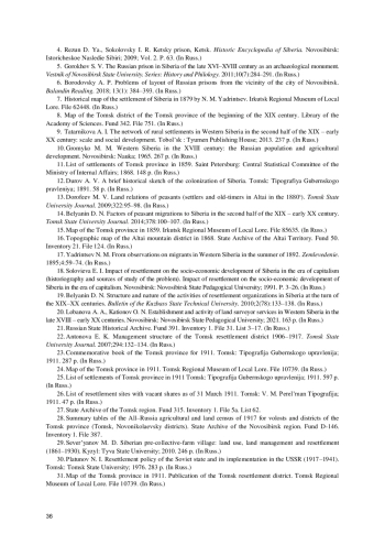 14. Белянин Д. Н. Факторы крестьянских переселений в Сибирь во второй половине XIX - начале XX в. // Вестник Томского государственного университета. 2014. № 378. С. 100-107. EDN: RZCHXF