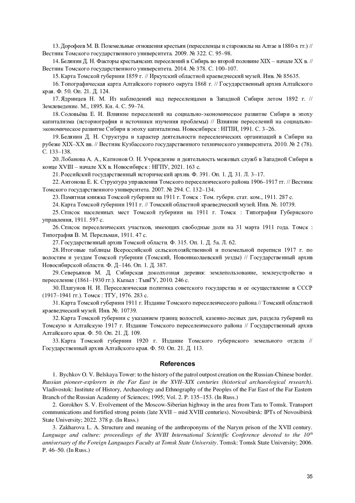 13. Дорофеев М. В. Поземельные отношения крестьян (переселенцы и старожилы на Алтае в 1880-х гг.) // Вестник Томского государственного университета. 2009. № 322. С. 95-98. EDN: LHQPPF