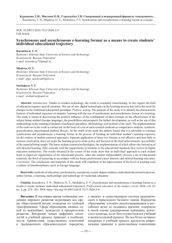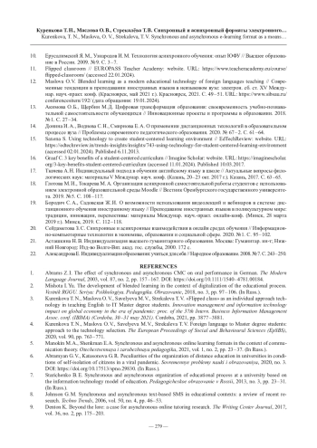 5. Манокин М. А., Шенкман Е. А. Синхронный и асинхронный форматы онлайн-обучения в контексте теории коммуникации // Отечественная и зарубежная педагогика. 2021. Т. 1, № 2. С. 23 - 37.