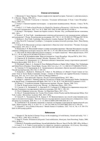 11. Маслов В. М. Философия визуального поворота: от теории к практике // Философская мысль. 2019. № 12. С. 39-56. DOI: 10.25136/2409-8728.2019.12.31335 EDN: RYOTFA