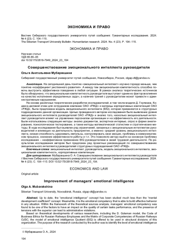На сегодняшний день понятие «эмоциональный интеллект» изучено гораздо меньше, чем понятие «коэффициент умственного развития». А между тем эмоциональная компетентность способна помочь выстроить эффективное поведение в любой ситуации. В рамках анализа теоретических источников было обнаружено, что эмоциональная компетентность руководителя выступает одним из факторов влияния на качество исполнения определенных задач, а наличие трений с руководителем может привести к административным нарушениям. На основе различных теоретических разработок исследователей, в том числе модели Д. Гоулмана, Кодекса деловой этики для сотрудников компании ОАО «РЖД» и матрицы корпоративных компетенций ОАО «РЖД», была предложена модель эмоционального интеллекта (EIQ), которая применяется в структурных подразделениях данной организации. Целью проведенного автором исследования было выявление уровня эмоционального интеллекта руководителей ОАО «РЖД» и анализ того, насколько эмоциональный интеллект руководителя влияет на управление персоналом организации и на эффективность его деятельности. Были использованы следующие методы: анализ документов, экспертное интервью, опрос в форме анкетирования, психологическое тестирование, а также методы математической статистики и стратегические методы. В ходе исследования был выявлен ряд ограничений, связанных с эмоциональным интеллектом руководителей и влияющих на деятельность предприятия, а именно: средний уровень эмоционального интеллекта, низкая способность сдерживать импульсы, контролировать свои эмоции, проблемы в коммуникативном процессе, снижение эффективности работы и т. п. Это позволило автору выйти на основную проблему исследования - неэффективное применение EIQ руководителями в своей трудовой деятельности. По результатам исследования автором был предложен ряд проектных рекомендаций по совершенствованию эмоционального интеллекта руководителей структурных подразделений ОАО «РЖД».