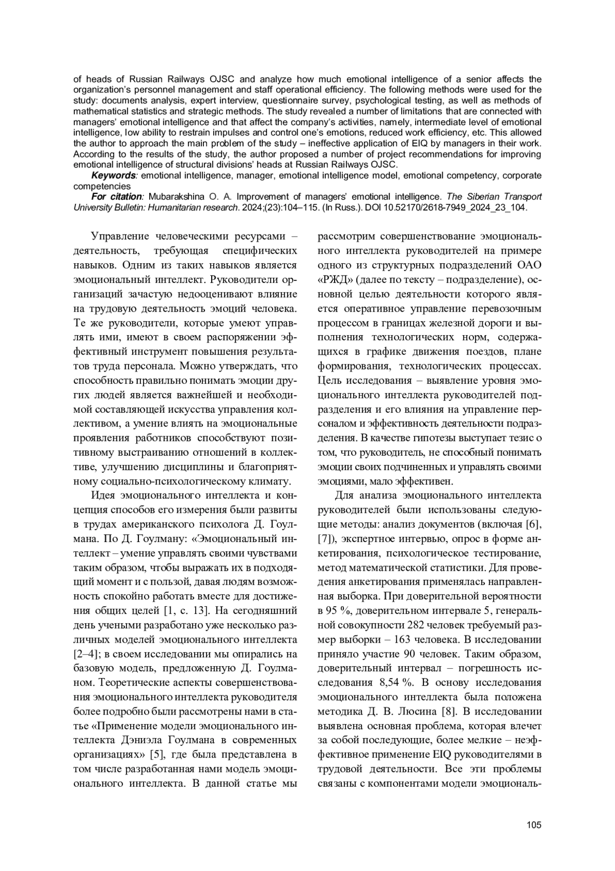 5. Мубаракшина О. А., Козырь А. Р. Применение модели эмоционально интеллекта Дэниэла Гоулмана в современных организациях // Научные исследования в современном мире. Теория и практика: Сборник избранных статей Всероссийской (национальной) научно-практической конференции. СПб.: ГНИИ “Нацразвитие”, 2022. С. 84-87. EDN: ZIJVAL