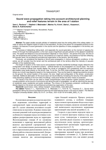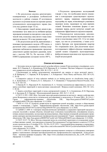 5. Защита селитебных территорий от шума сортировочной станции / Е. А. Калиниченко, И. В. Пирумова, А. А. Басалаева, В. Л. Павлова // Железнодорожный транспорт. 2022. № 5. С. 42-45. EDN: YYWRLI