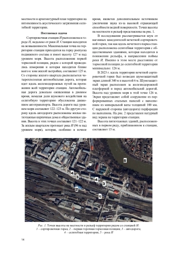 Коллективом авторов исследуется акустическое загрязнение селитебных территорий от сортировочной горки железнодорожной станции И с целью снижения негативного воздействия шума на население. В рамках поиска приемлемых решений этой задачи рассматриваются особенности генерации звука в источнике и специфика распространения шума на территории. Железнодорожная станция И по основному назначению и характеру выполняемой работы является двусторонней сортировочной станцией с последовательным расположением парков и параллельным расположением систем, по объему работы отнесена к внеклассной. Для расформирования и формирования поездов на станции имеются две автоматизированные горки большой мощности.