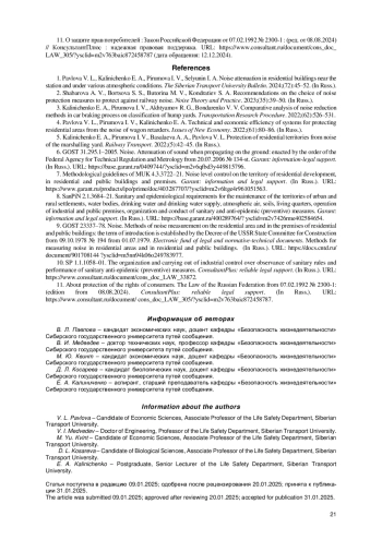 7. МУК 4.3.3722-21. Контроль уровня шума на территории жилой застройки, в жилых и общественных зданиях и помещениях // Гарант: информационно-правовое обеспечение. URL: https://www.garant.ru/prod-ucts/ipo/prime/doc/403287707/?ysclid=m2v6ltge4r961051563 (дата обращения: 12.12.2024).