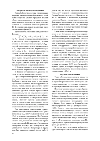 В ходе исследования, выполненного на статистических данных Горьковской железной дороги за 20222023 гг., установлено, что если изменением рабочего парка грузовых вагонов по железной дороге объяснялось 85 % вариабельности участковой скорости по железной дороге, то при переходе на рабочие парки грузовых вагонов отдельных территориальных управлений железной дороги степень объяснения вариабельности итогового показателя выросла до 90 %. По результатам исследования составлено уравнение регрессии для определения потерь участковой скорости, позволившее снизить погрешность прогнозирования в 2,5 раза.