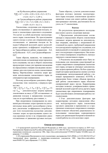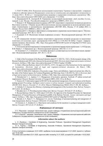 7. Ходакевич А. Н. Обеспечение тяговым подвижным составом // Железнодорожный транспорт. 2012. № 6. С. 27-29. EDN: OZGHON
