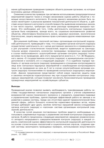 5. Масалаб А. Ф. Проблемы развития государственного контроля и надзора в контексте реформы законодательства // Правоприменение. 2020. № 4. С. 94-101. EDN: QNANSN