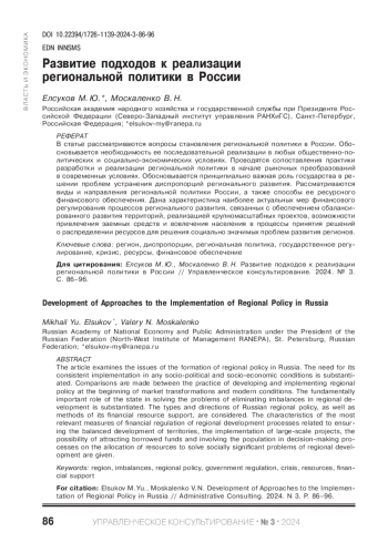В статье рассматриваются вопросы становления региональной политики в России. Обосновывается необходимость ее последовательной реализации в любых общественно-политических и социально-экономических условиях. Проводятся сопоставления практики разработки и реализации региональной политики в начале рыночных преобразований в современных условиях. Обосновывается принципиально важная роль государства в решении проблем устранения диспропорций регионального развития. Рассматриваются виды и направления региональной политики России, а также способы ее ресурсного финансового обеспечения. Дана характеристика наиболее актуальных мер финансового регулирования процессов регионального развития, связанных с обеспечением сбалансированного развития территорий, реализацией крупномасштабных проектов, возможности привлечения заемных средств и вовлечения населения в процессы принятия решений о распределении ресурсов для решения социально значимых проблем развития регионов.