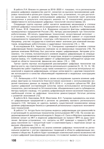 Развитие информационных технологий, интернета вещей, облачных вычислений, аналитики больших данных и других цифровых технологий оказывает воздействие на различные сферы жизни человека, включая экономику, образование, здравоохранение, транспорт и городскую инфраструктуру. Современная научно-популярная литература значительное внимание уделяет влиянию цифровизации на социально-экономические показатели. Одна из важнейших тем современных региональных исследований — влияние цифровых технологий на региональный экономический рост