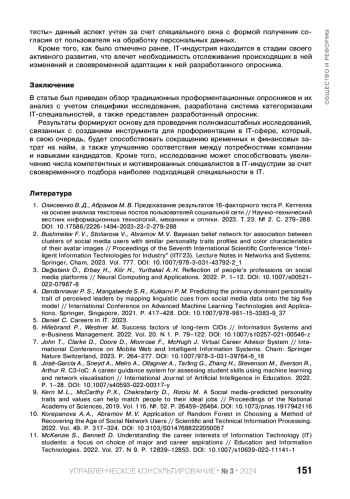 9. Kern M. L., McCarthy P. X., Chakrabarty D., Rizoiu M. A Social media-predicted personality traits and values can help match people to their ideal jobs // Proceedings of the National Academy of Sciences, 2019. Vol. 116. №. 52. P. 26459-26464. DOI: 10.1073/pnas.1917942116
